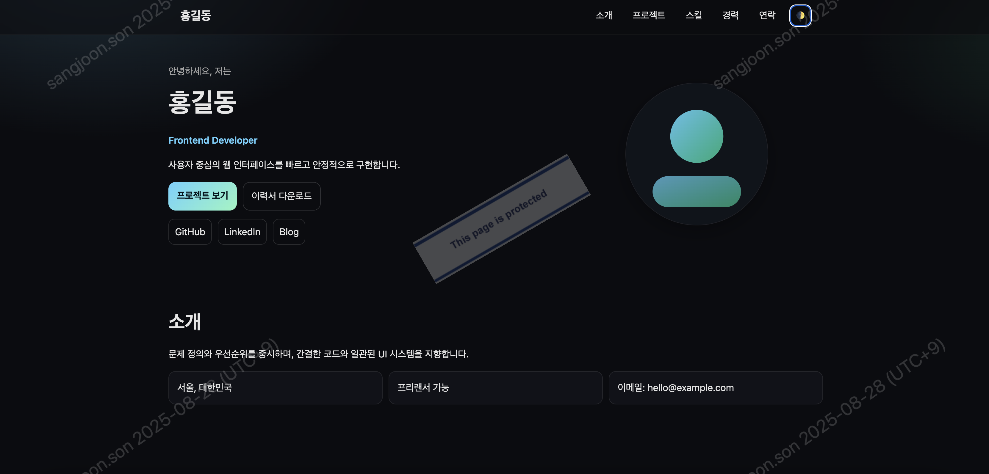 간편 커스터마이즈 포트폴리오 홈페이지 템플릿(
